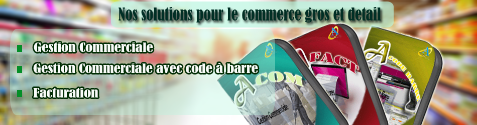 Ce logiciel gère le commerce gros et détail et permet le suivi de crédits clients et fournisseurs, la gestion des stocks et offre les statistiques liées à la vente et àl'achat.